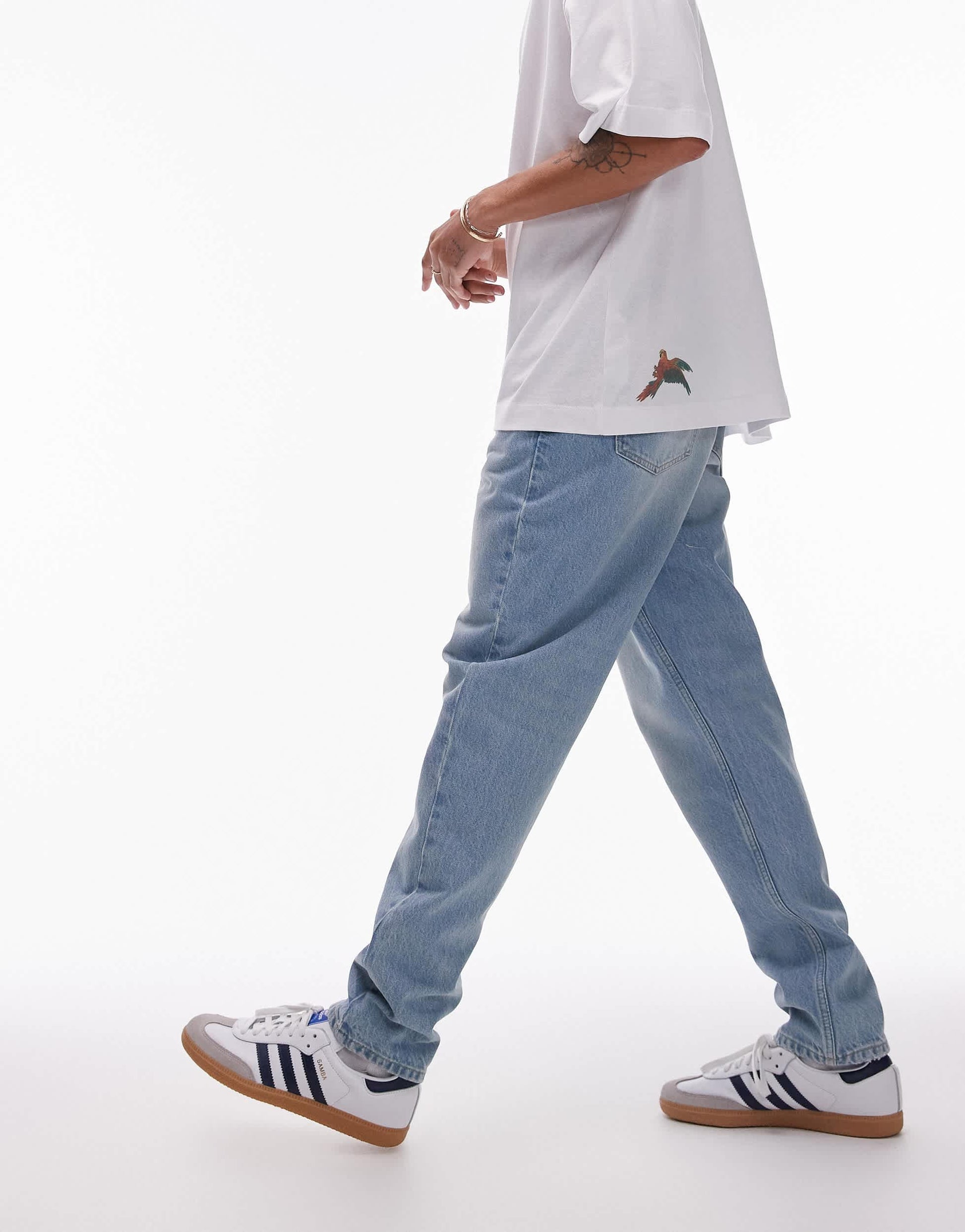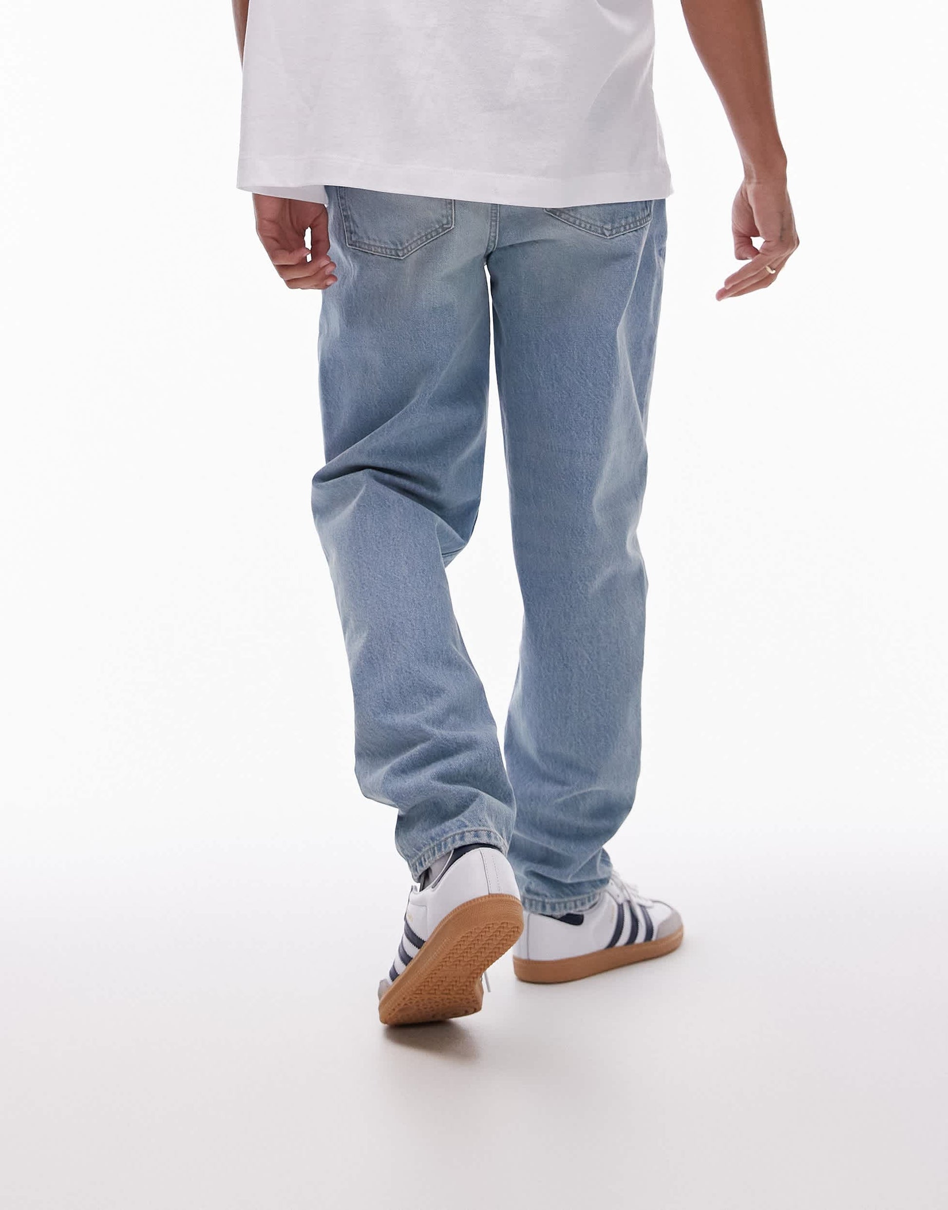 Non-stretch denim: light-blue wash Main: 100% Cotton.