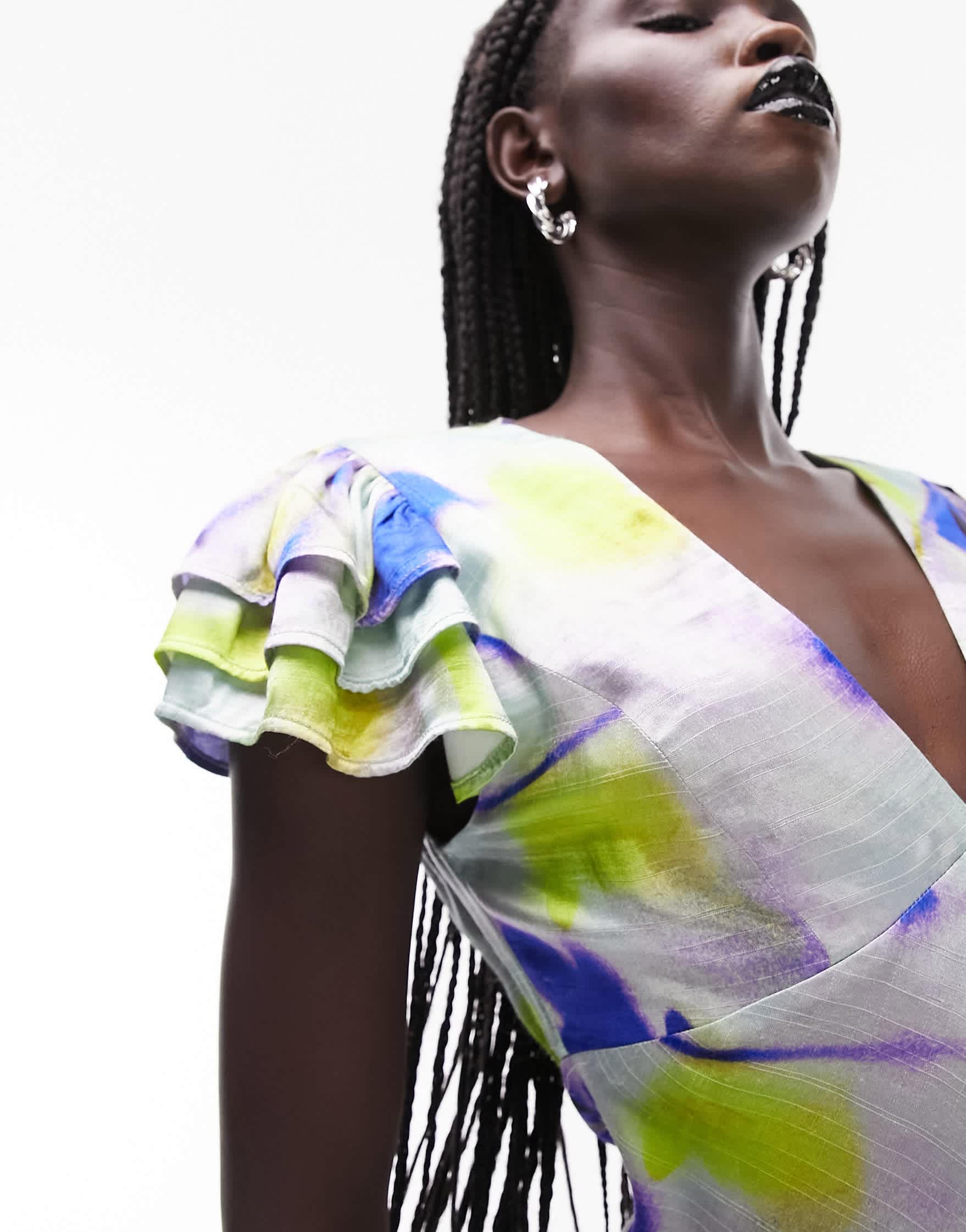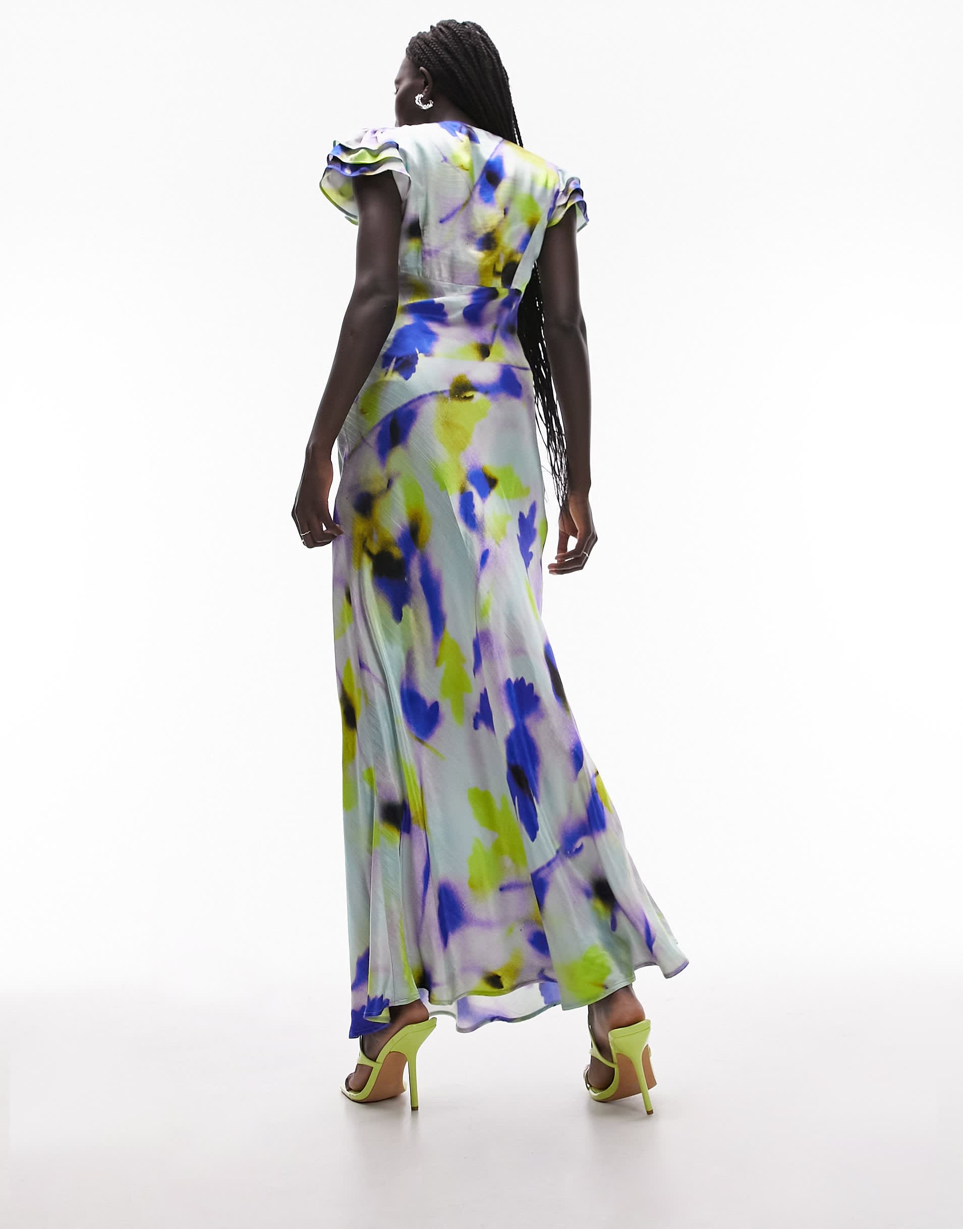 Topshop angel sleeve tie back midi dress in floral print