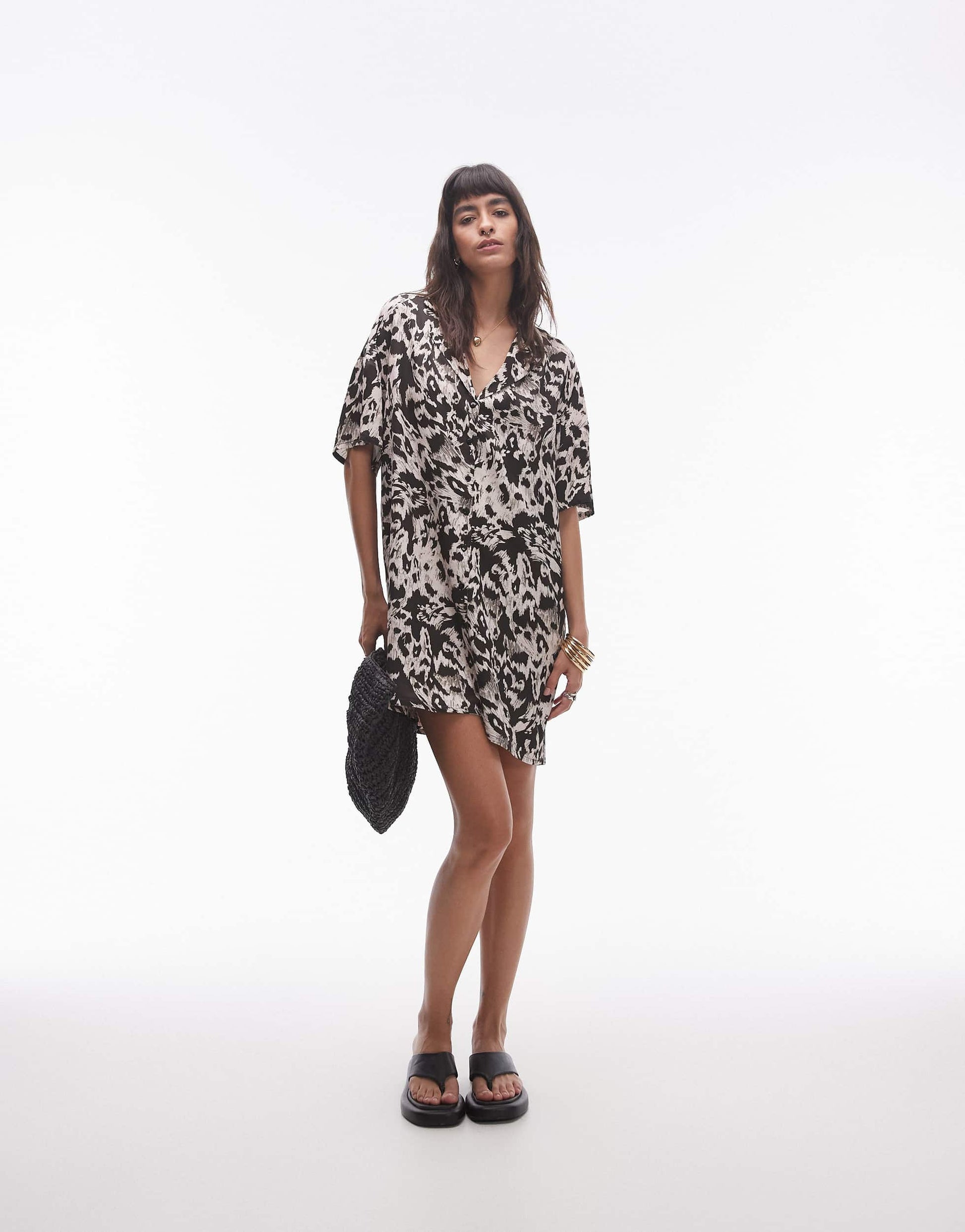 Topshop button down mini shirt dress in mono print