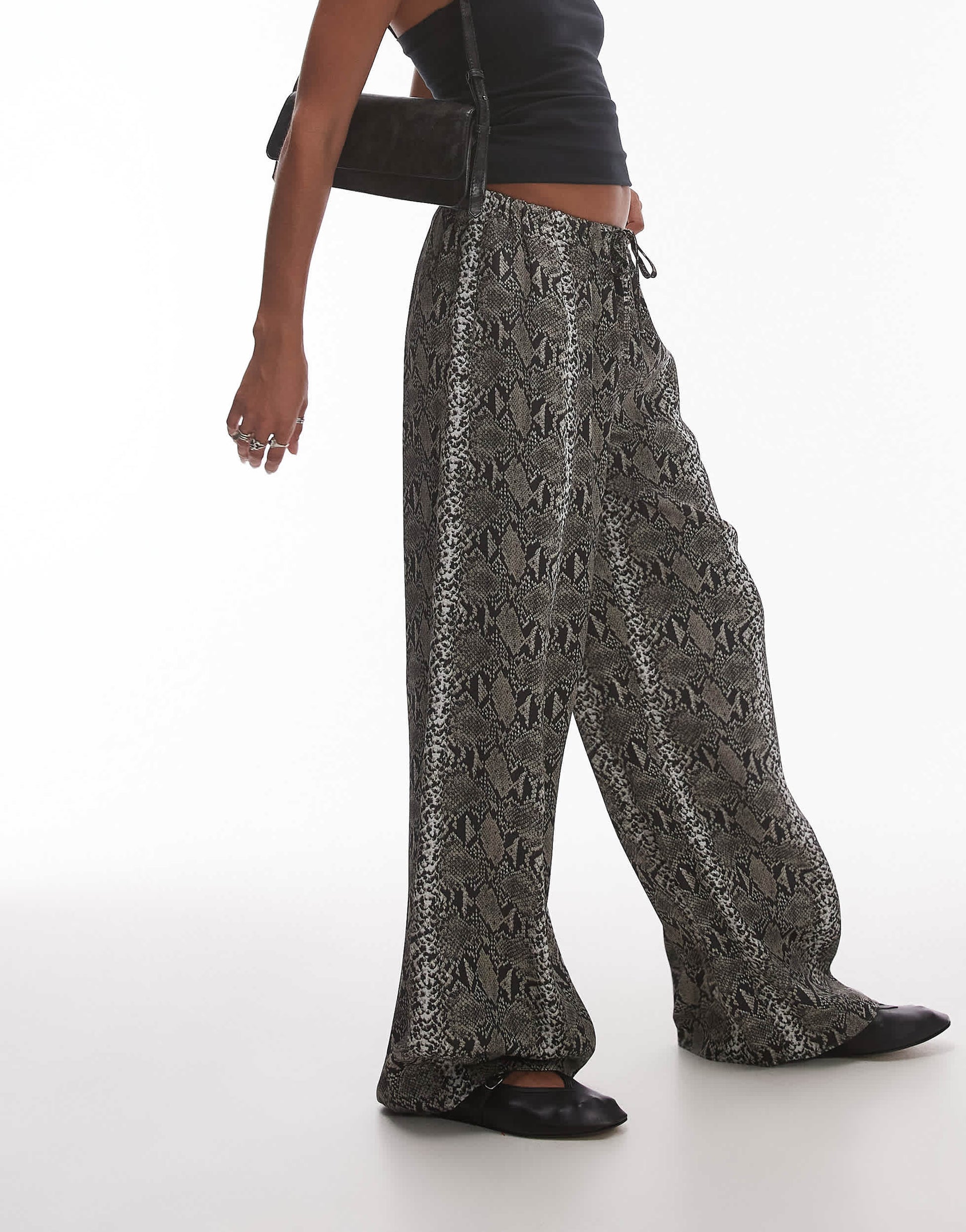 Topshop satin wide leg trouser with tie waist in snake