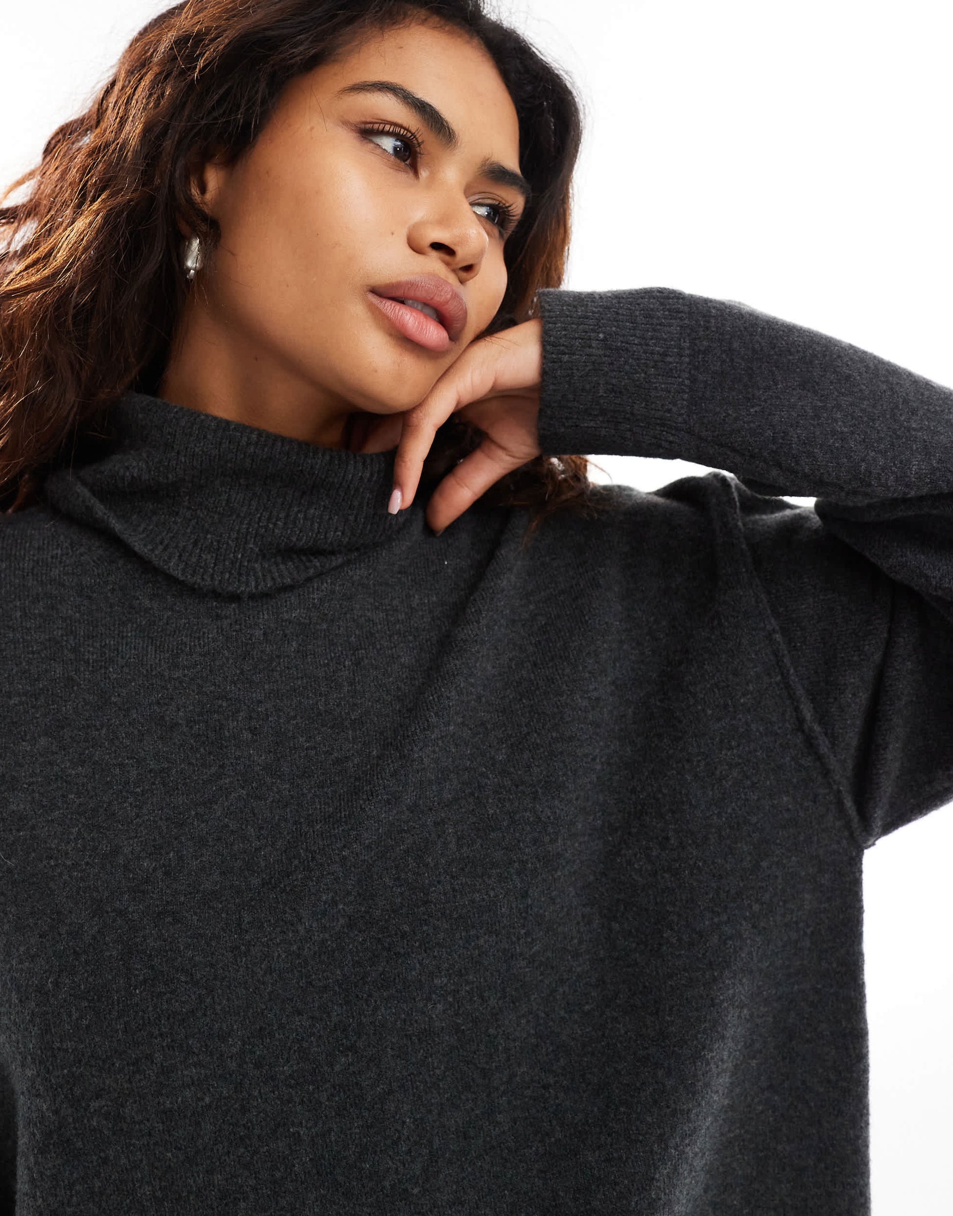 Weekday Annie wool blend roll neck knitted mini dress in black melange exclusive to ASOS