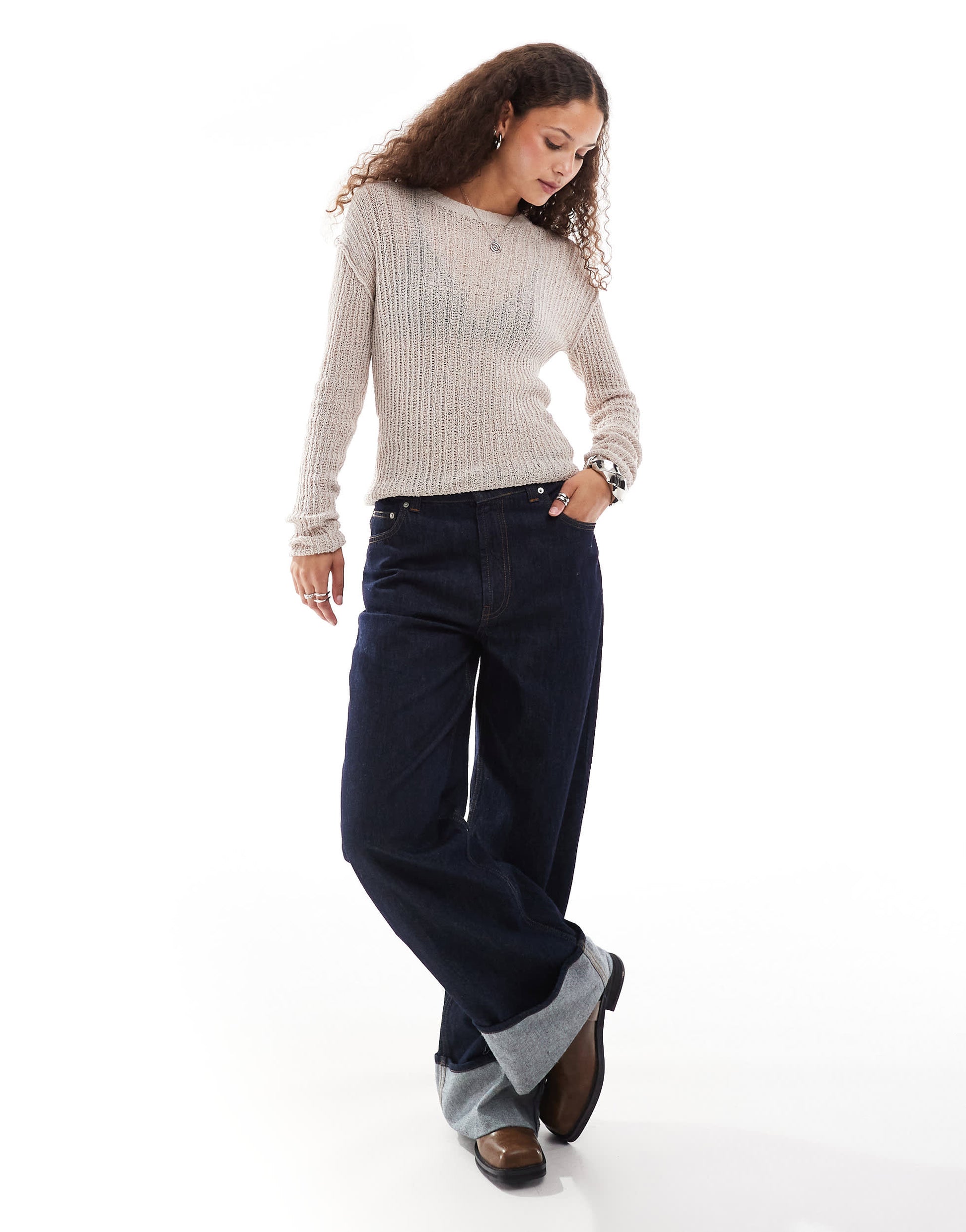 Weekday slim fit lightweight rib jumper in beige exclusive to ASOS